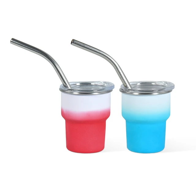 RTS Custom 2.5oz Cold Color Changing Mini Shotglass Tumbler Single Wall Stainless Steel Cup with Metal Straw White Box Packing