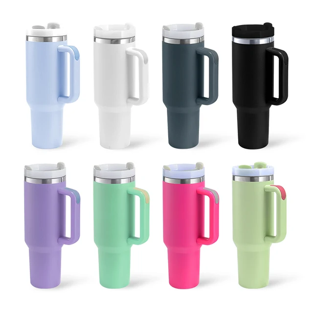 RTS Stocked H2.0 40oz Powder Coated Travel Mug with Handle Stainless Steel 40 oz Tumbler Mix 8 Colors, 8pcs/ctn
