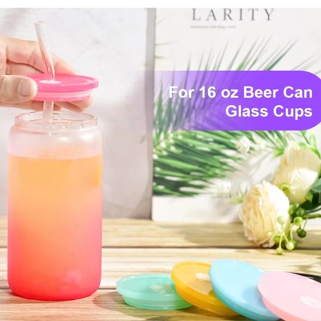 RTS Wholesale Lid Manufacture 16oz Glass clear Frosted Cups Glass Can Tumbler Mugs Flask Colored Replacement Plastic Lids