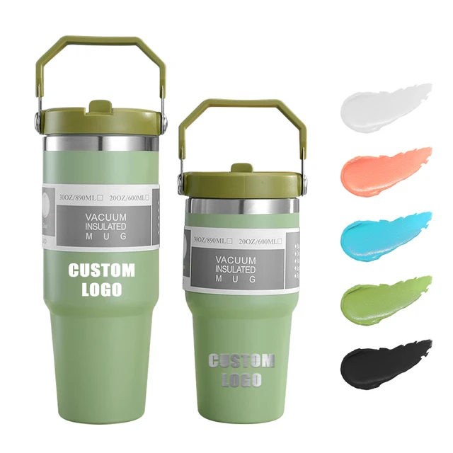 30oz Sublimation Double Wall Stainless Steel Vacuum Tumbler Mugs Water Bottle with Handle / Flip Straw for Heat Press Printing