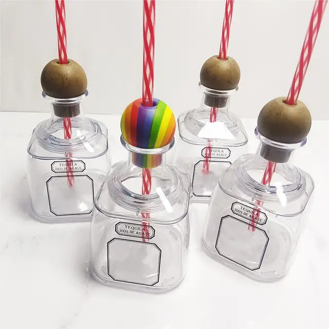 Ready for Shipment 375ml Mini Tequila Bottles Acrylic Water Reusable Cup Mini Tequila Bottles with Wooden Stopper
