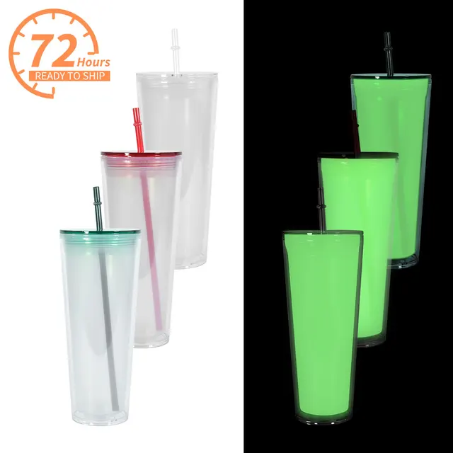 Halloween GLOW in Dark 24oz Double Wall Acrylic Tumblers for Snow Globe Cups with Pre Drilled Hole Lids Straws and Hole Stopper