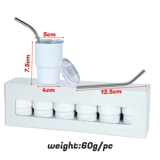 RTS All White 3oz Mini Tumbler Shot Glass With Straw Sublimation Double Layer Metal Cute Shot Glasses Set 3oz With Lids