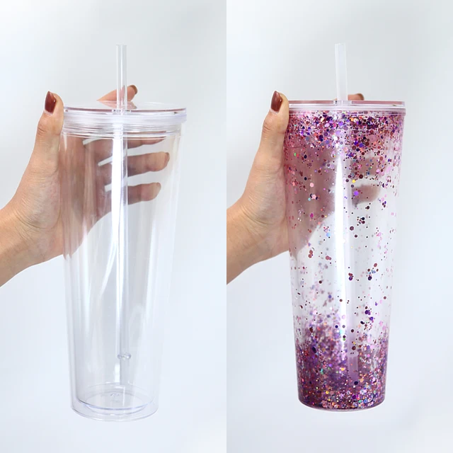 CN Warehouse DIY Pre-drilled Double Wall 24oz Clear Acrylic Tumbler Reusable Plastic Tumbler with Straw and Stopper